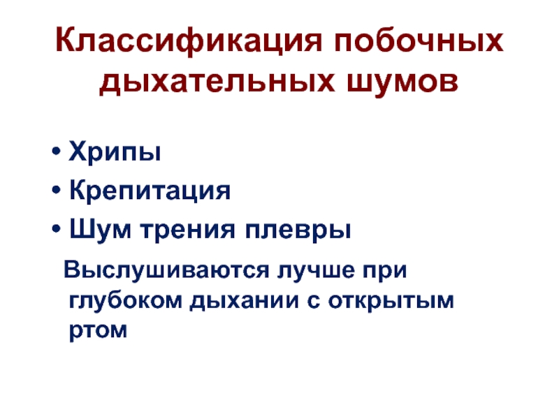 Слайд 9Классификация побочных дыхательных шумов