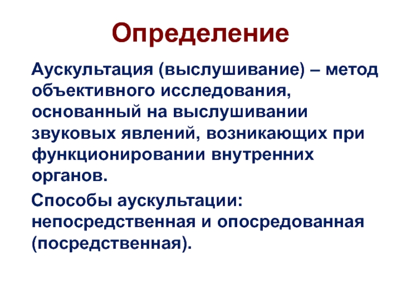 Аускультация (выслушивание) – метод объективного исследования, основанный