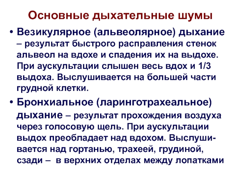 Основные дыхательные шумы (выслушиваются как у здоровых людей,