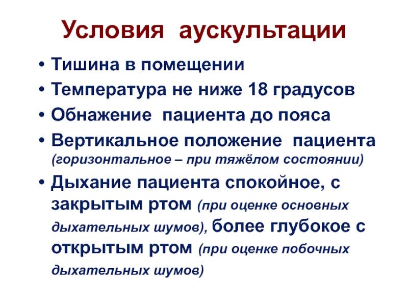 Слайд 3Условия аускультации