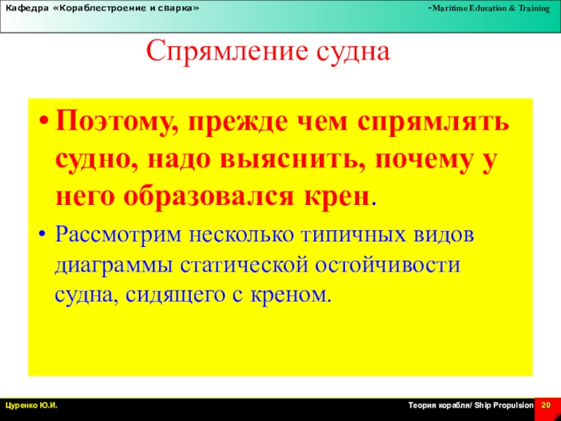 Поэтому, прежде чем спрямлять судно, надо выяснить, почему у
