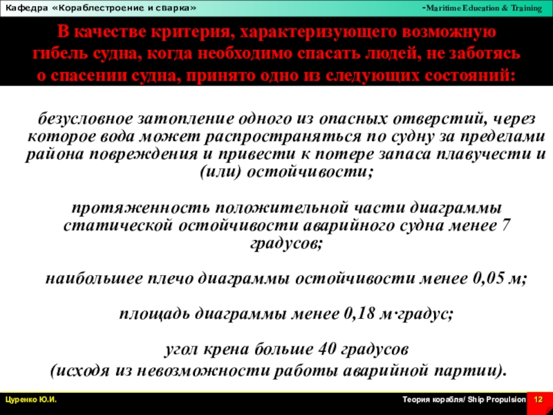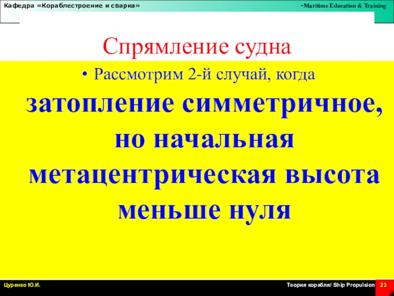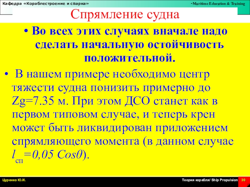 Слайд 1Аварийная остойчивость. Спрямление судна
