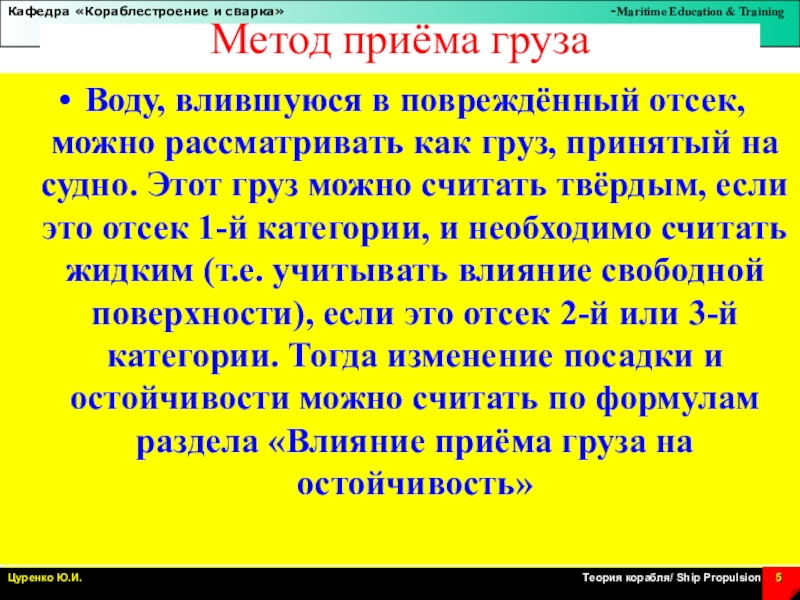 Слайд 10Методы расчёта непотопляемости