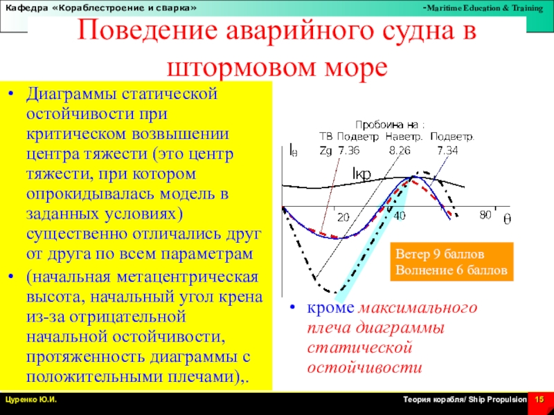 Слайд 15Поведение аварийного судна в штормовом море