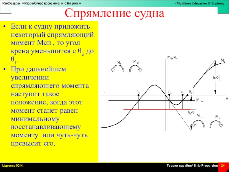 Если к судну приложить некоторый спрямляющий момент Мсп ,