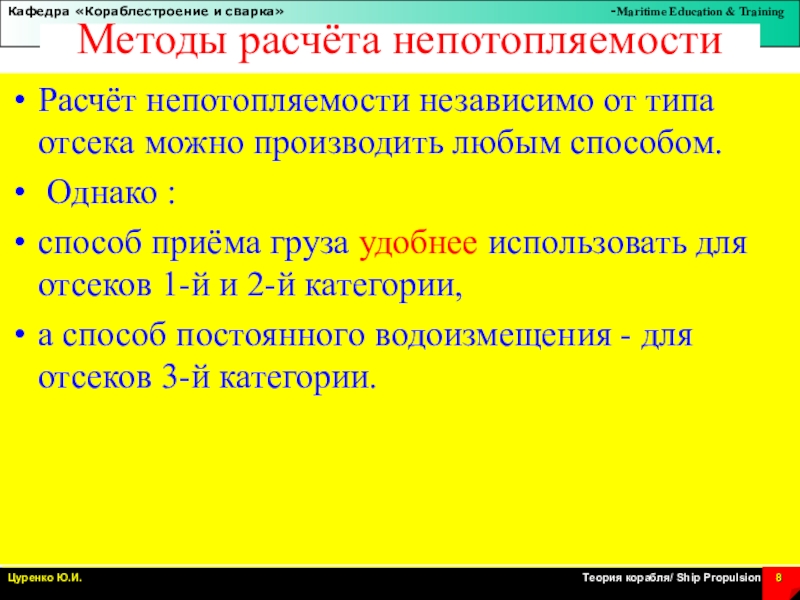 Слайд 8Методы расчёта непотопляемости