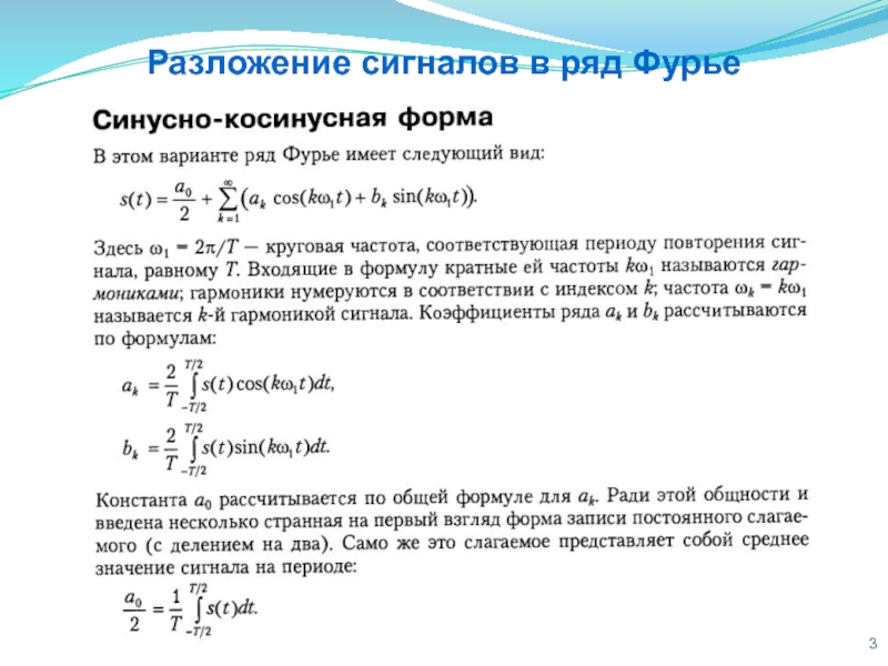 Слайд 2Тема 3 Разложение сложных сигналов на элементарные