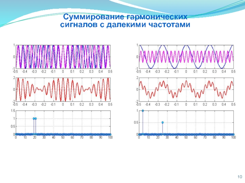 Слайд 10Суммирование гармонических сигналов с далекими частотами