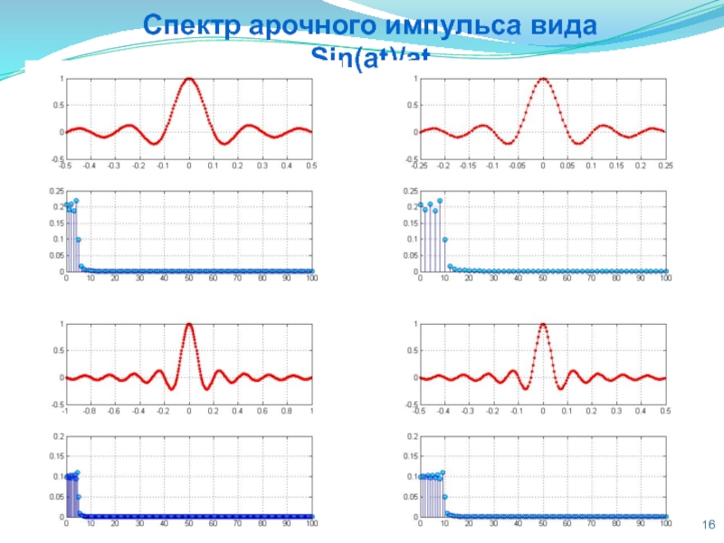 Слайд 16Спектр арочного импульса вида Sin(at)/at