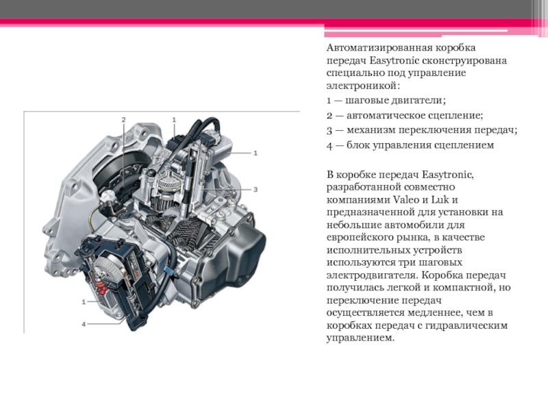 Слайд 4Автоматизированная коробка передач Easytronic сконструирована специально под управление электроникой: