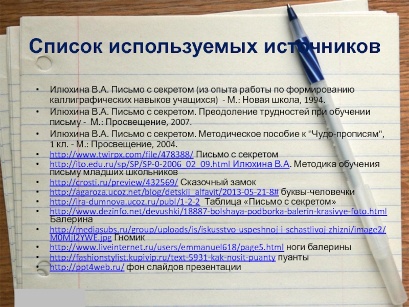 http://ito.edu.ru/sp/SP/SP-0-2006_02_09.html Илюхина В.А. Методика обучения письму младших школьников