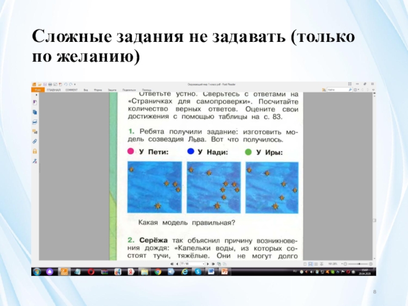 Слайд 8Сложные задания не задавать (только по желанию)