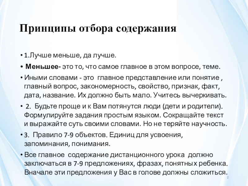 Слайд 2Принципы отбора содержания