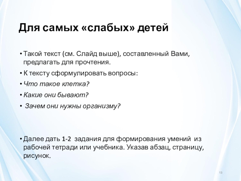 Слайд 13Для самых «слабых» детей