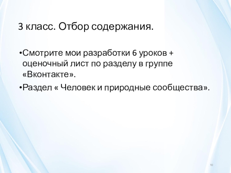 Слайд 103 класс. Отбор содержания.