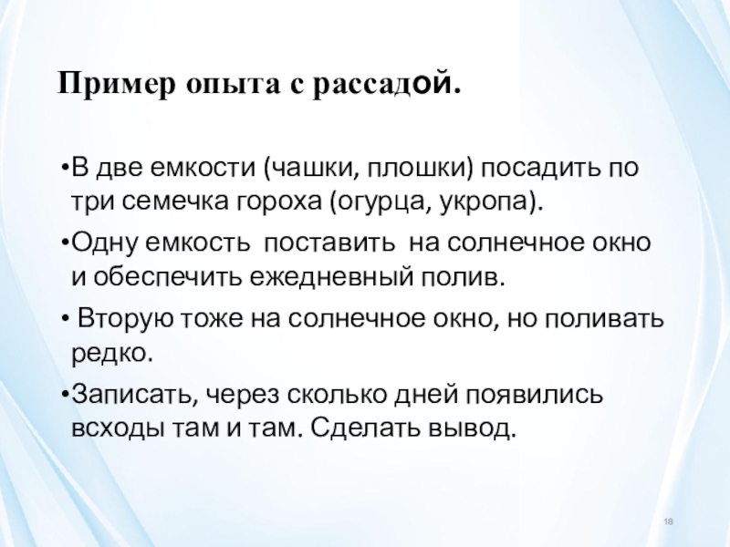 Слайд 18Пример опыта с рассадой.