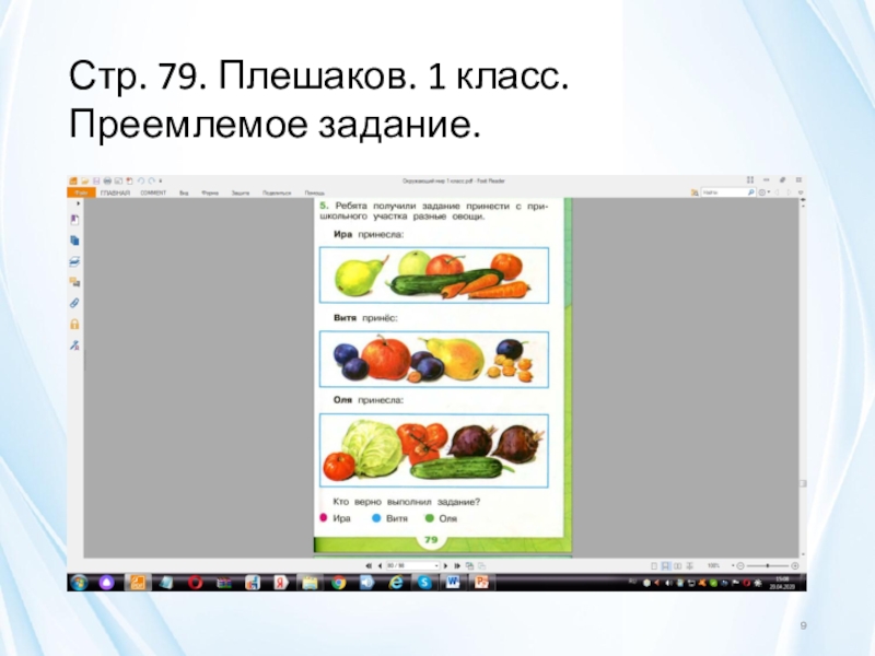 Слайд 9Стр. 79. Плешаков. 1 класс.Преемлемое задание.