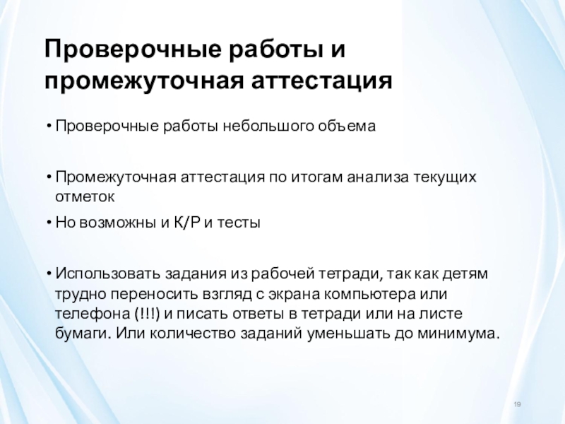 Слайд 19Проверочные работы и промежуточная аттестация