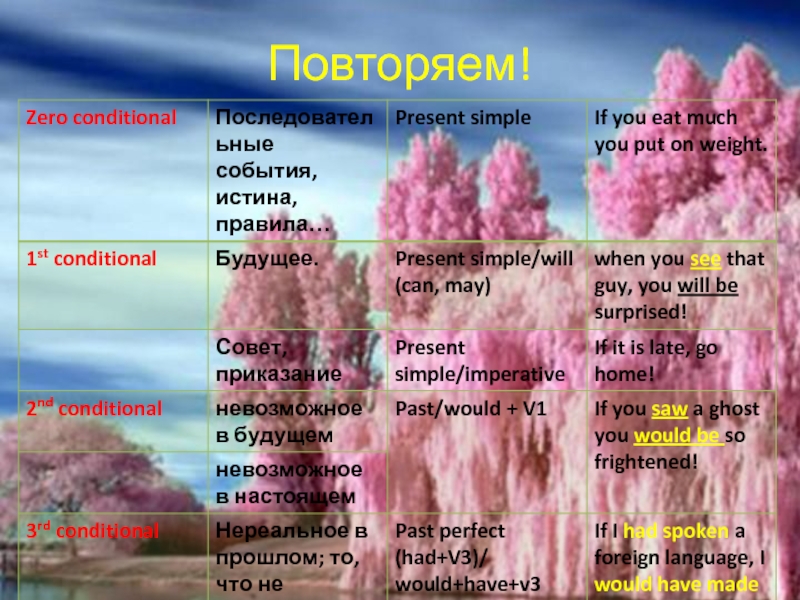 Нулевой тип условных. Раскройте скобки