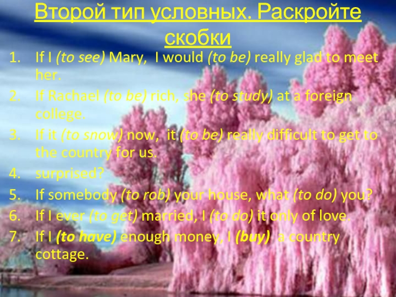 Второй тип условных. Раскройте скобки