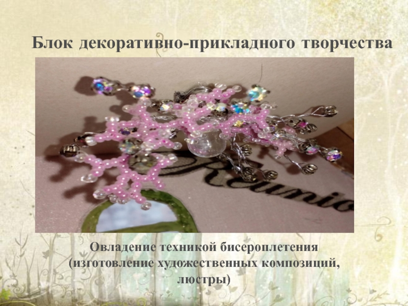 Блок декоративно-прикладного творчества  Овладение техникой бисероплетения  (изготовление художественных композиций, люстры)