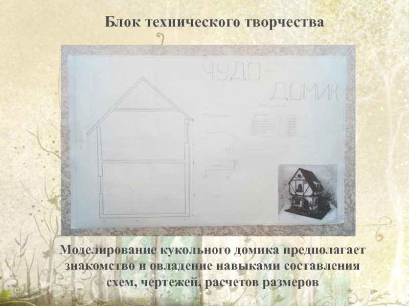 Блок технического творчестваМоделирование кукольного домика предполагает знакомство и овладение навыками составления схем, чертежей,