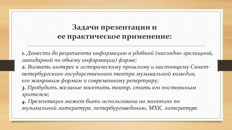 языка и литературы в.к. СПб ГБПОУ СПб «МПУ», канд. филол. наук Митрофанова Лариса МихайловнаСанкт-Петербургский государственный театр музыкальной комедии: