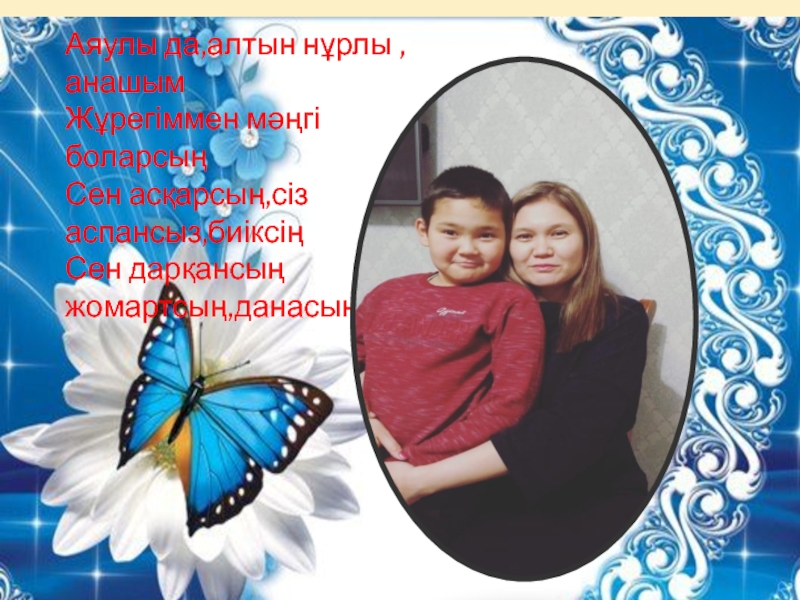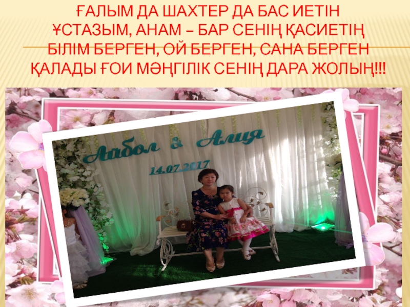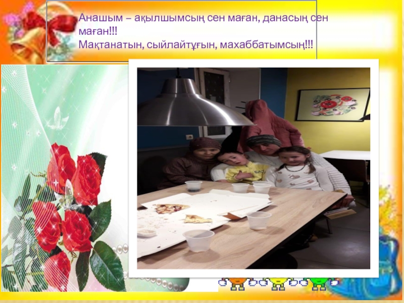 Слайд 13Анашым – ақылшымсың сен маған, данасың сен маған!!! Мақтанатын, сыйлайтұғын, махаббатымсың!!!