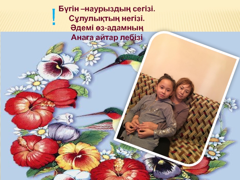 !Бүгін –наурыздың сегізі.Сұлулықтың негізі.Әдемі өз-адамныңАнаға айтар лебізі