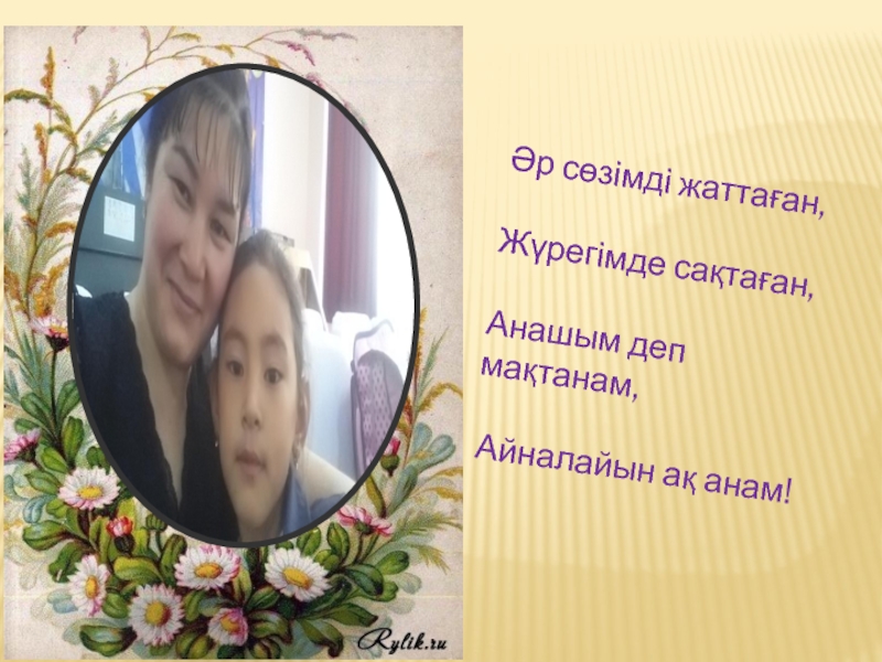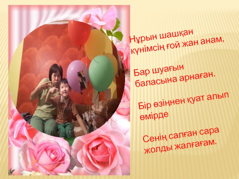 Слайд 17Нұрын шашқан күнімсің ғой жан анам,