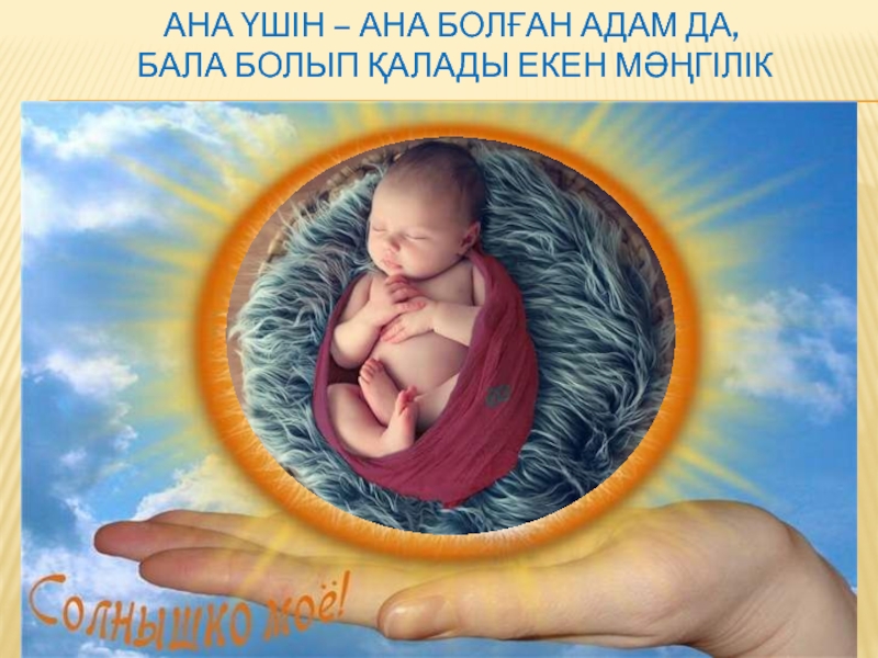 Слайд 21Ана үшін – ана болған адам да, бала болып қалады