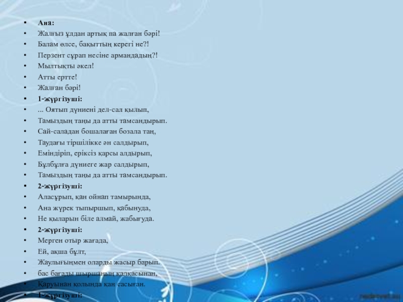 Слайд 6Оқушылар қызығушылығын арттыру мақсатында драманың жазылу тарихы, оны ойнаған артистер