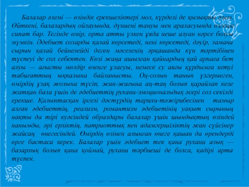 Слайд 9 Балалар әлемі — өзіндік ерекшеліктері