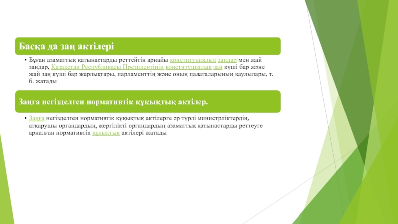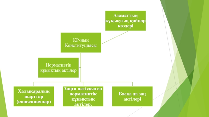 Слайд 3Aзаматтың құқықтың қайнар көздеріне мыналар жатады: Қазақстан Республикасының Конституциясы. Конституция