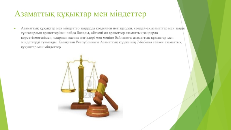 Слайд 4Азаматтық құқықтар мен міндеттер
