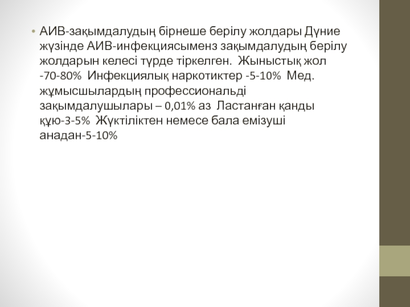 АИВ-зақымдалудың бірнеше берілу жолдары Дүние жүзінде АИВ-инфекциясыменз зақымдалудың