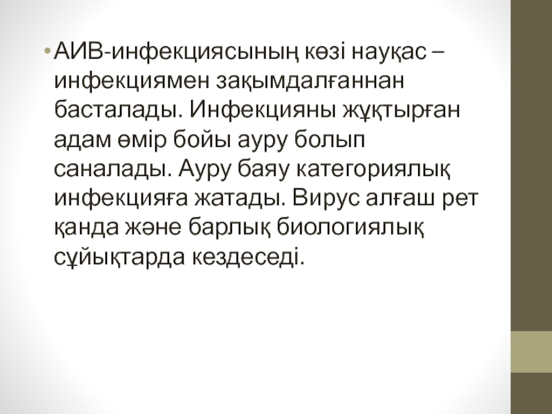 АИВ-инфекциясының көзі науқас – инфекциямен зақымдалғаннан басталады. Инфекцияны
