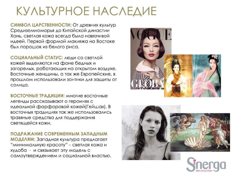 ПОДРАЖАНИЕ СОВРЕМЕННЫМ ЗАПАДНЫМ МОДЕЛЯМ: Западная культура предлагает “минимальную красоту” – светлая кожа и худоба - и связывает эту модель с самоутверждением и социальной властью.