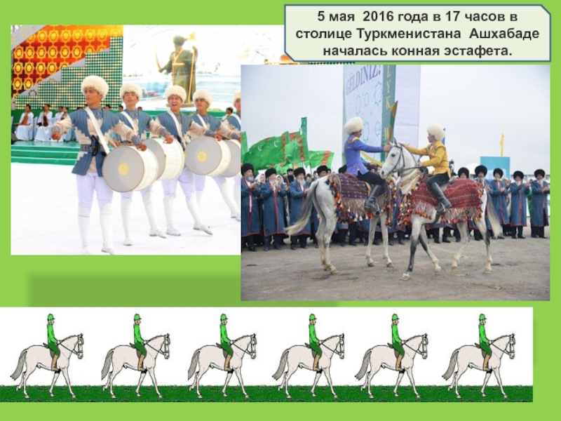 Слайд 16В ходе церемонии старта Президент Туркменистана Гурбангулы Бердымухамедов выразил уверенность, что конный пробег