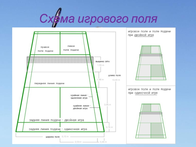 ракеток, стремясь, чтобы он упал на поле противника. Соперничают два игрока или две пары игроков.