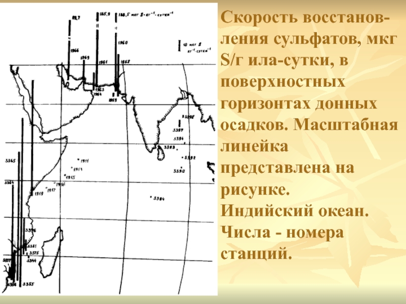 Слайд 6Скорость восстанов-ления сульфатов, мкг S/г ила-сутки, в поверхностных горизонтах донных