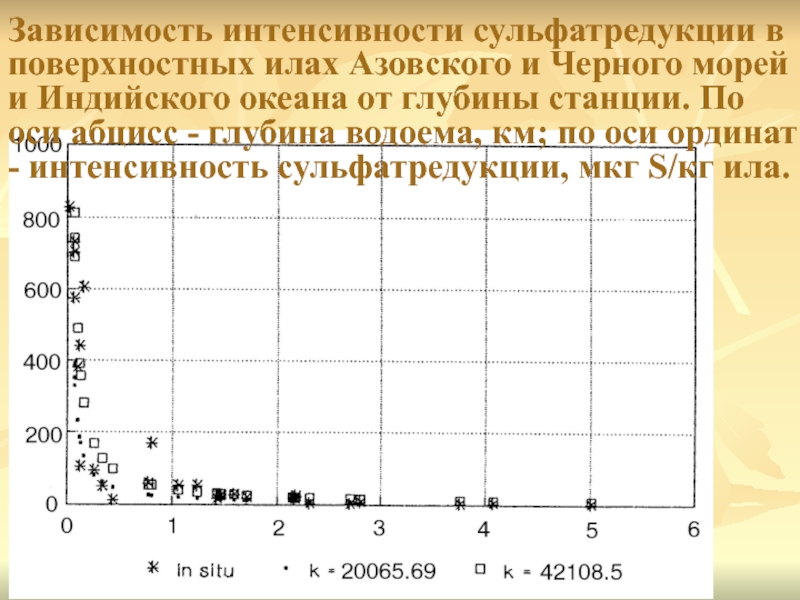 Слайд 8Зависимость интенсивности сульфатредукции в поверхностных илах Азовского и Черного морей