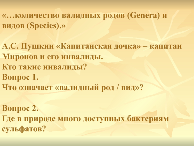 Слайд 5«…количество валидных родов (Genera) и видов (Species).»