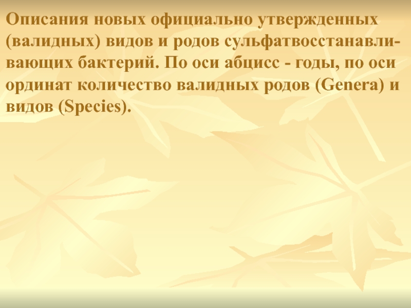 Слайд 4Описания новых официально утвержденных (валидных) видов и родов сульфатвосстанавли-вающих бактерий.