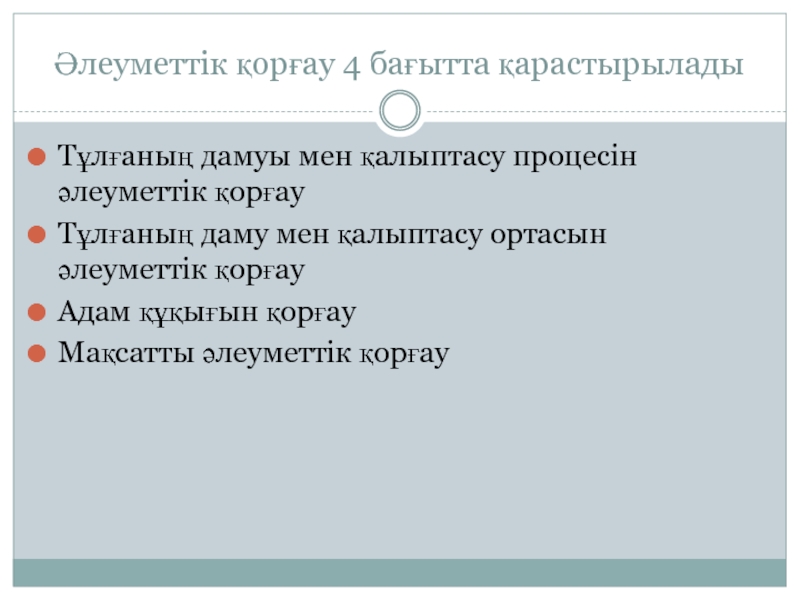 Слайд 9Әлеуметтік қорғау 4 бағытта қарастырылады