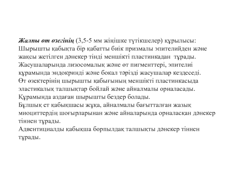 Слайд 13 Өт қапшығының гистофункционалды сипаттамасы