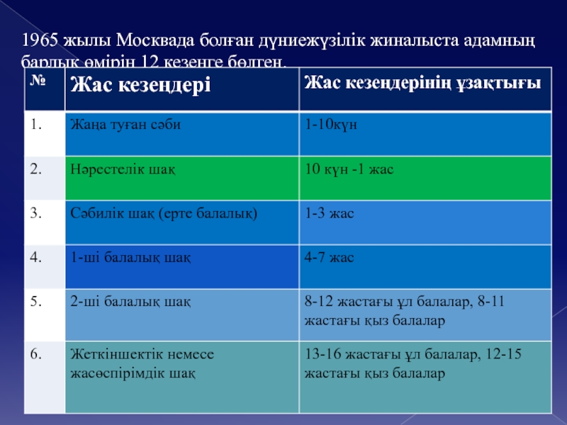 Слайд 231965 жылы Москвада болған дүниежүзілік жиналыста адамның барлық өмірін 12