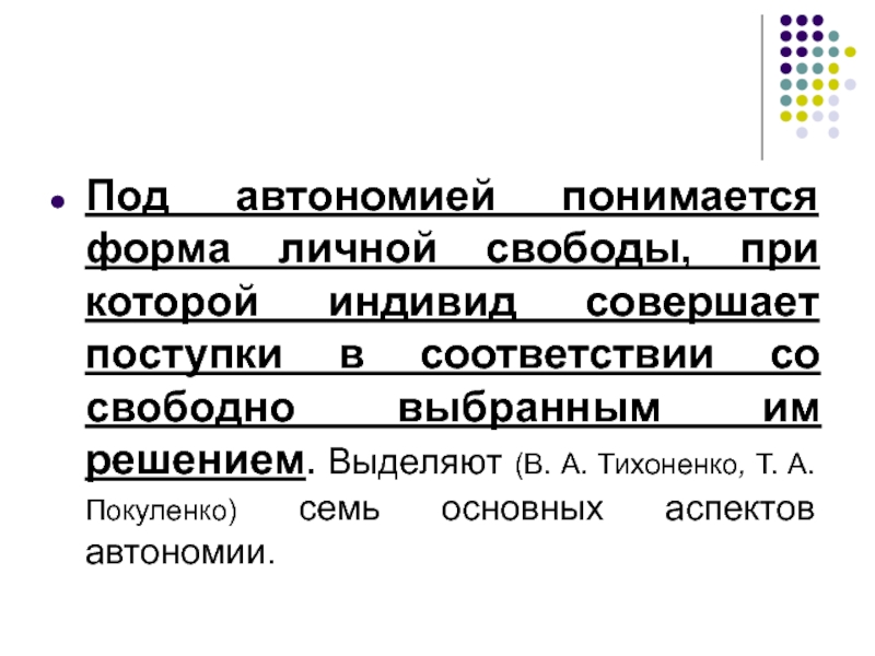 А. Тихоненко, Т. А. Покуленко) семь основных аспектов автономии.