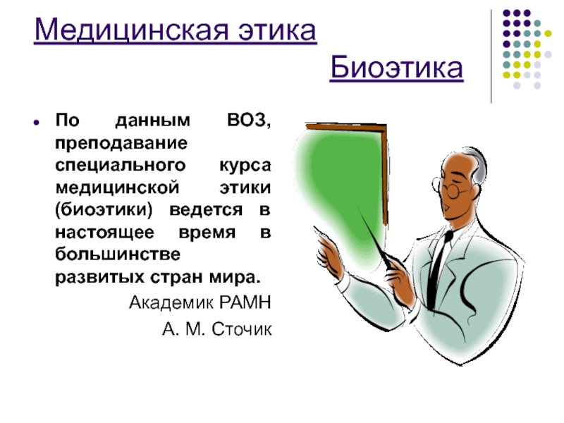 “К сожалению возражения В. Поттера не были приняты во внимание и термины “биоэтика”, “биомедицинская этика полностью вытеснили термин “медицинская этика”. Яровинский М. Я.