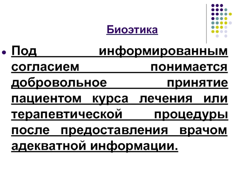 добровольное принятие пациентом курса лечения или терапевтической процедуры после предоставления врачом адекватной информации.